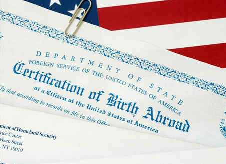 Documento oficial del gobierno de EUA que certifica que un menor, hijo de ciudadano americano nacido fuera de EUA, es ciudadano desde el nacimiento.